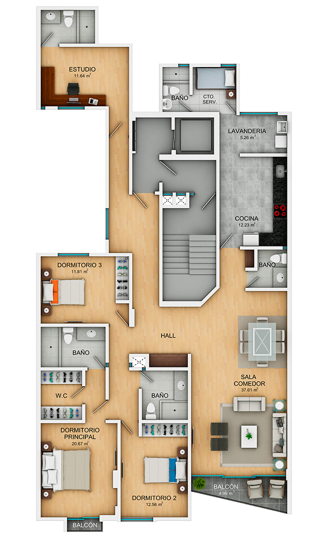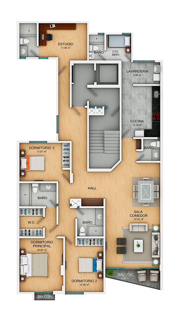 El proyecto consta de 11 exclusivos departamentos, 5 duplex y 6 flats que van desde los 152 m2 hasta los 303 m2.