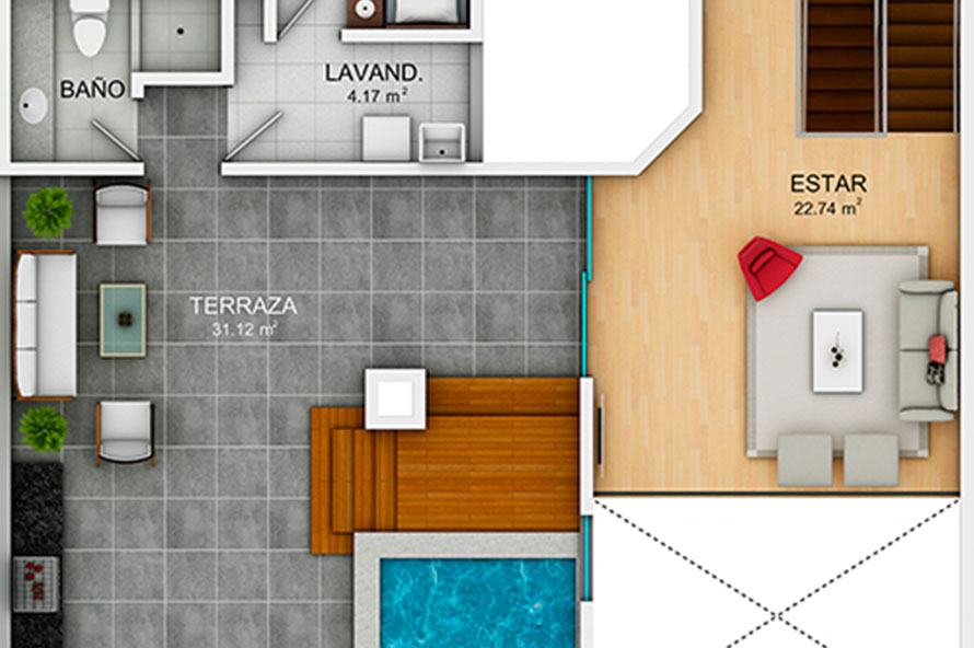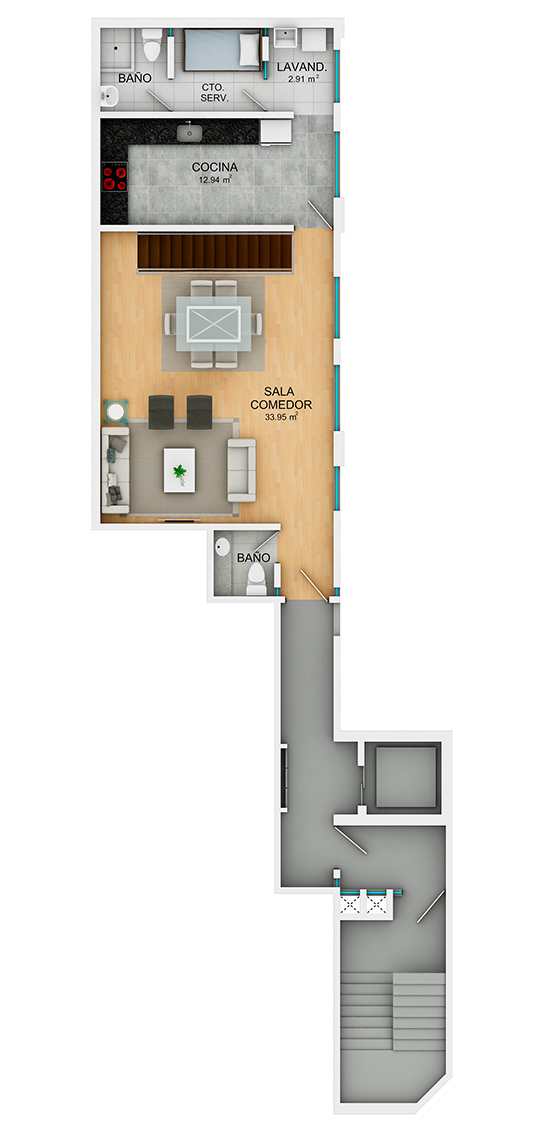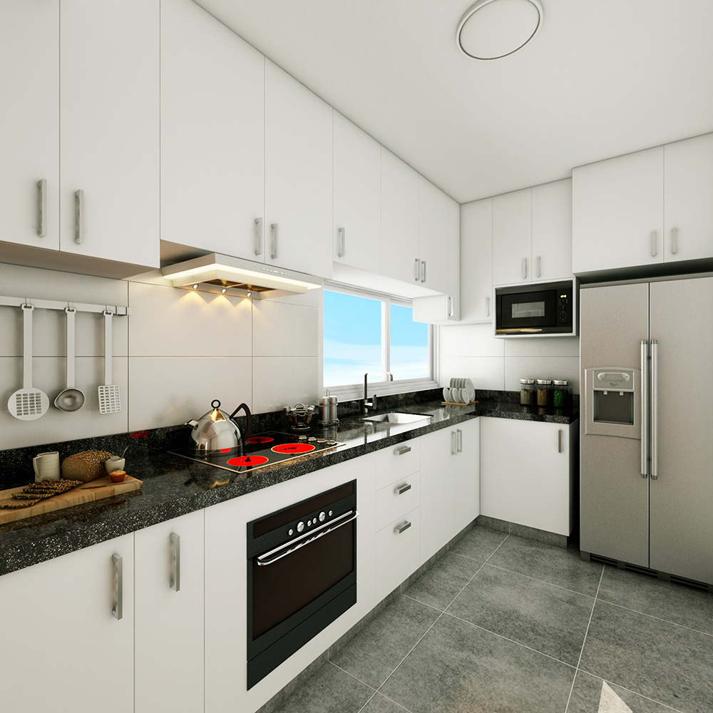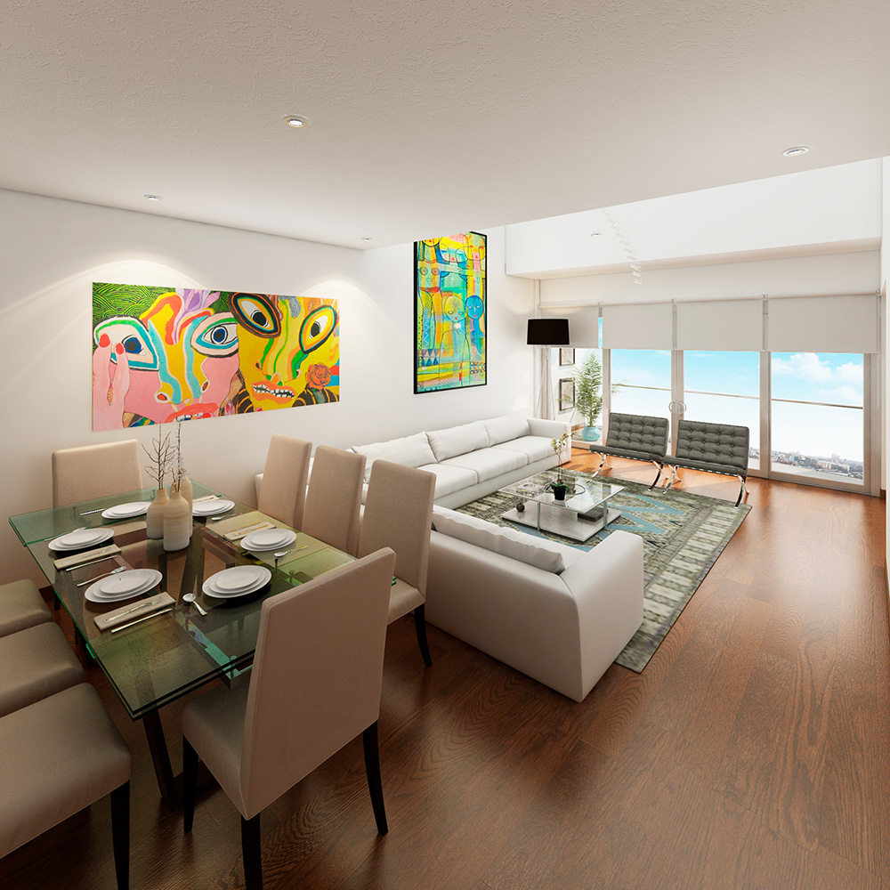 Adicionalmente los acabados tienen los altos estándares de nuestra empresa que incluyen ventanas y mamparas de PVC de la marca Ventanas & Estilos con cerrajería alemana que tienen una gran hermeticidad, rendimiento acústico y aislamiento térmico que es un distintivo de nuestros edificios, ascensor Otis personalizado de procedencia europea con paneles de acero martillado, acero negro e iluminación LED, griferías de cierre cerámico, sanitarios Villeroy & Boch y finos granitos.