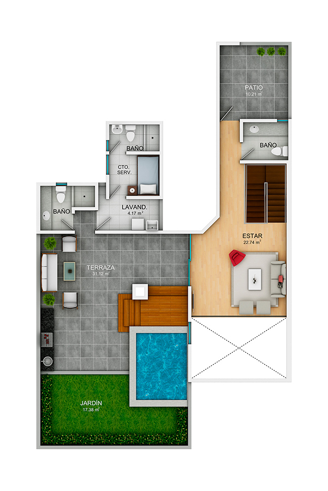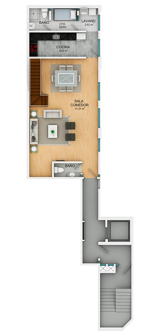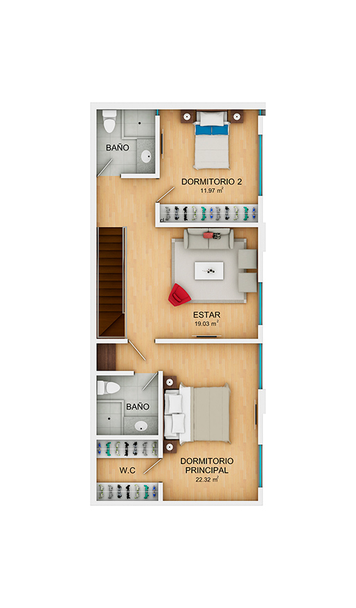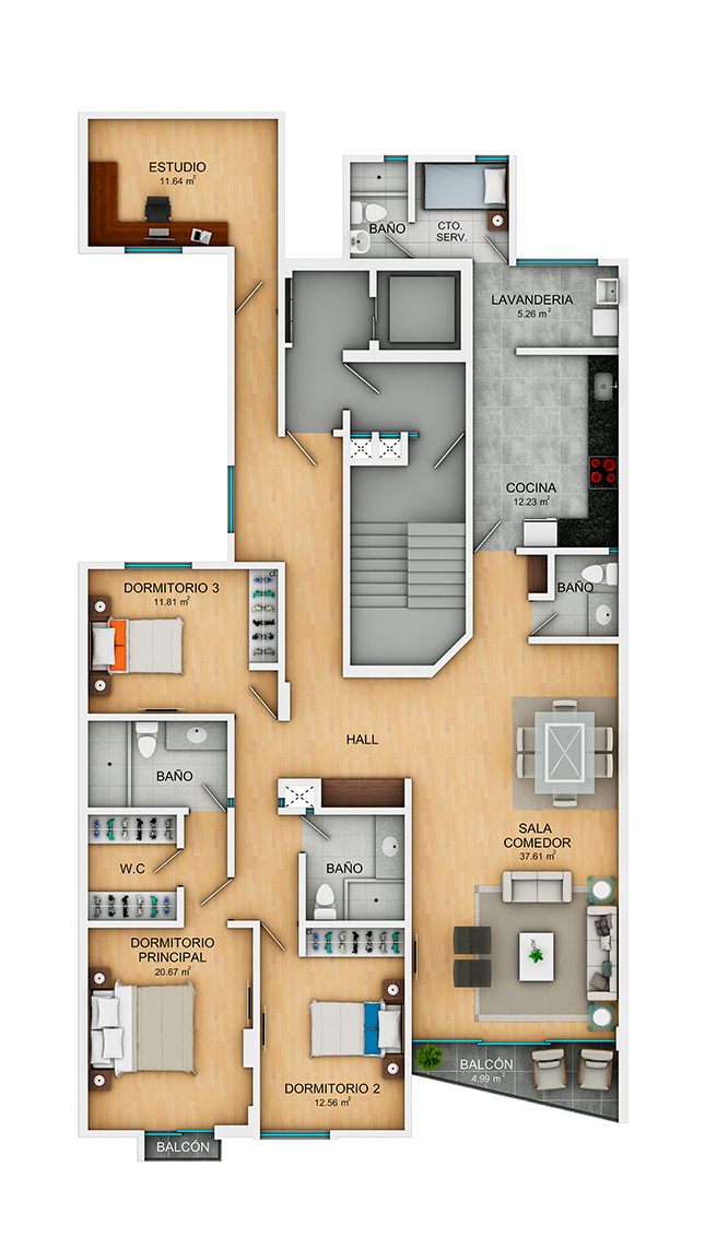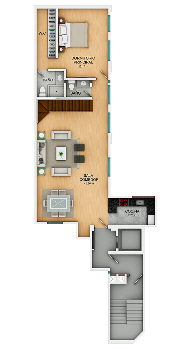 Adicionalmente los acabados tienen los altos estándares de nuestra empresa que incluyen ventanas y mamparas de PVC de la marca Ventanas & Estilos con cerrajería alemana que tienen una gran hermeticidad, rendimiento acústico y aislamiento térmico que es un distintivo de nuestros edificios, ascensor Otis personalizado de procedencia europea con paneles de acero martillado, acero negro e iluminación LED, griferías de cierre cerámico, sanitarios Villeroy & Boch y finos granitos.